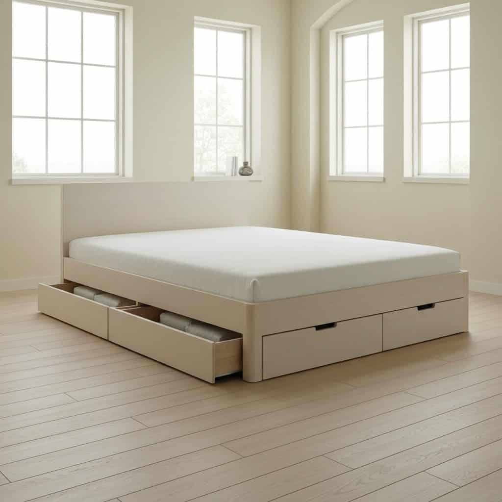 To najczęściej spotykany typ, gdzie szuflady są integralną częścią konstrukcji łóżka. Mogą być one rozmieszczone po całym obwodzie lub tylko z jednej strony. Często są one głębokie i pojemne, co pozwala na przechowywanie większych przedmiotów.